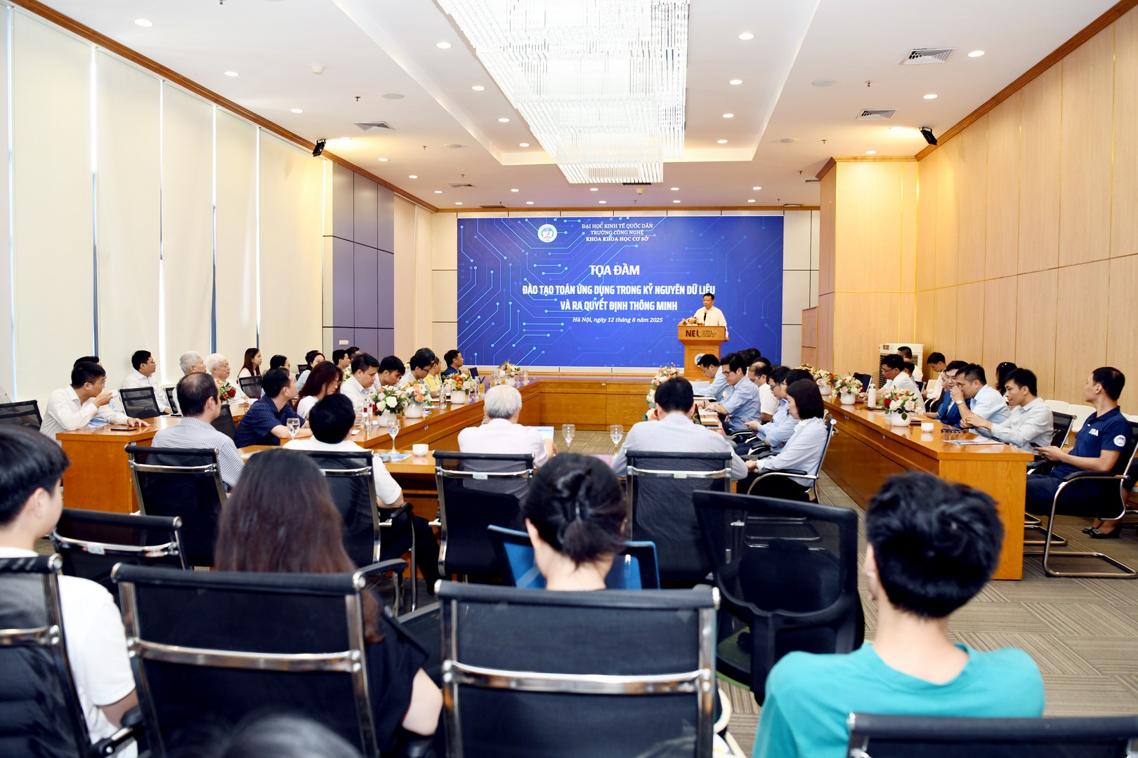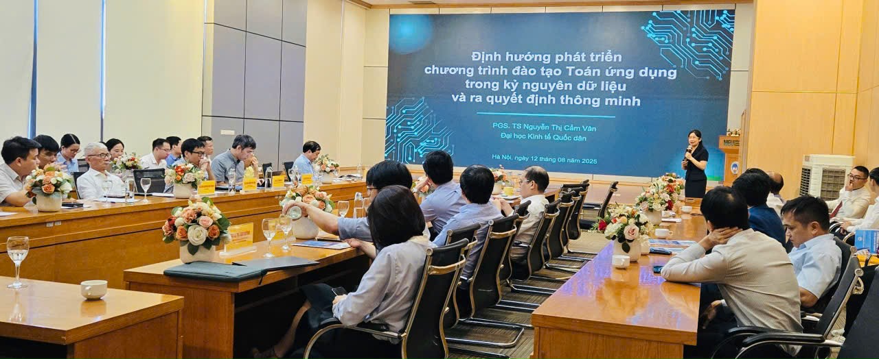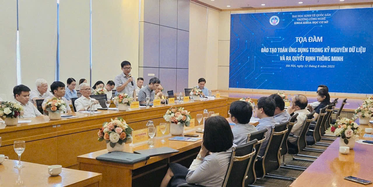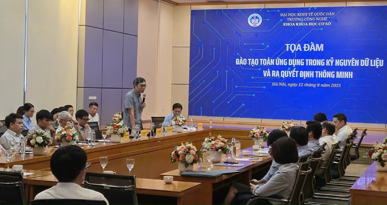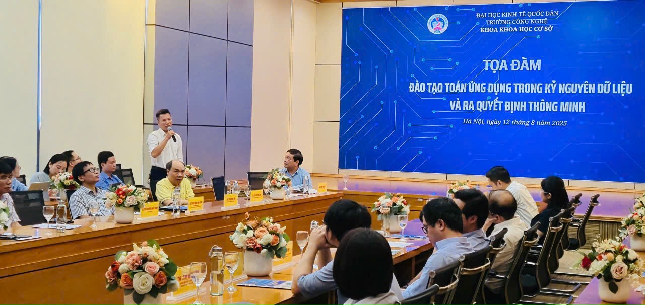 Ngày 12/8/2025, tại Đại học Kinh tế Quốc dân đã diễn ra Tọa đàm khoa học với chủ đề: “Đào tạo Toán ứng dụng trong kỷ nguyên dữ liệu và ra quyết định thông minh”. Sự kiện nhằm thúc đẩy giao lưu, hợp tác giữa NEU với các nhà khoa học và doanh nghiệp, qua đó chia sẻ kinh nghiệm, cập nhật xu hướng mới, đồng thời định hướng phát triển chương trình đào tạo đáp ứng nhu cầu nhân lực chất lượng cao cho nền kinh tế.
