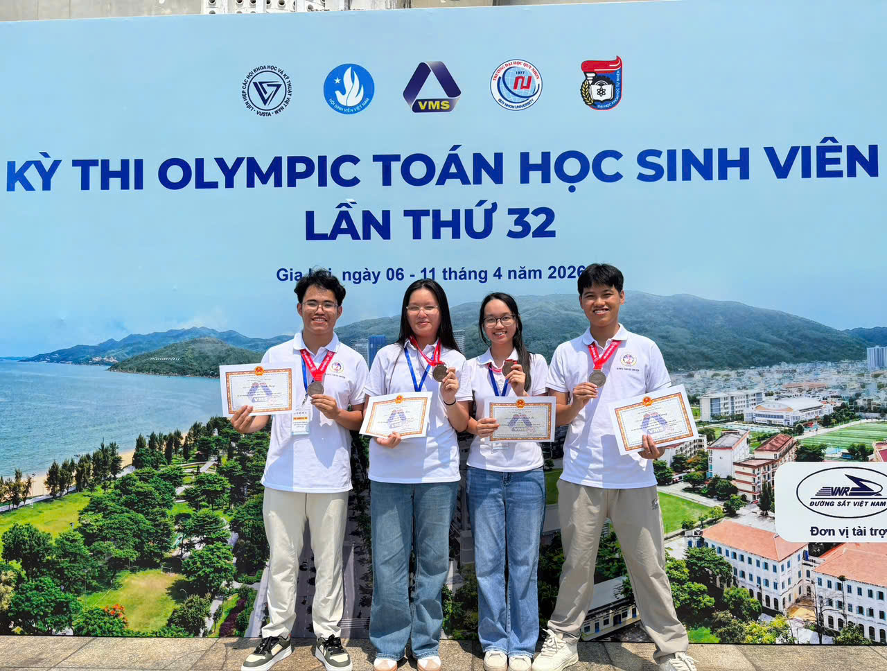Khoa Khoa học cơ sở trân trọng chúc mừng đội tuyển Olympic Toán sinh viên Đại học Kinh tế Quốc dân đã ghi dấu ấn tại Kỳ thi Olympic Toán học sinh viên toàn quốc lần thứ 32 năm 2026.