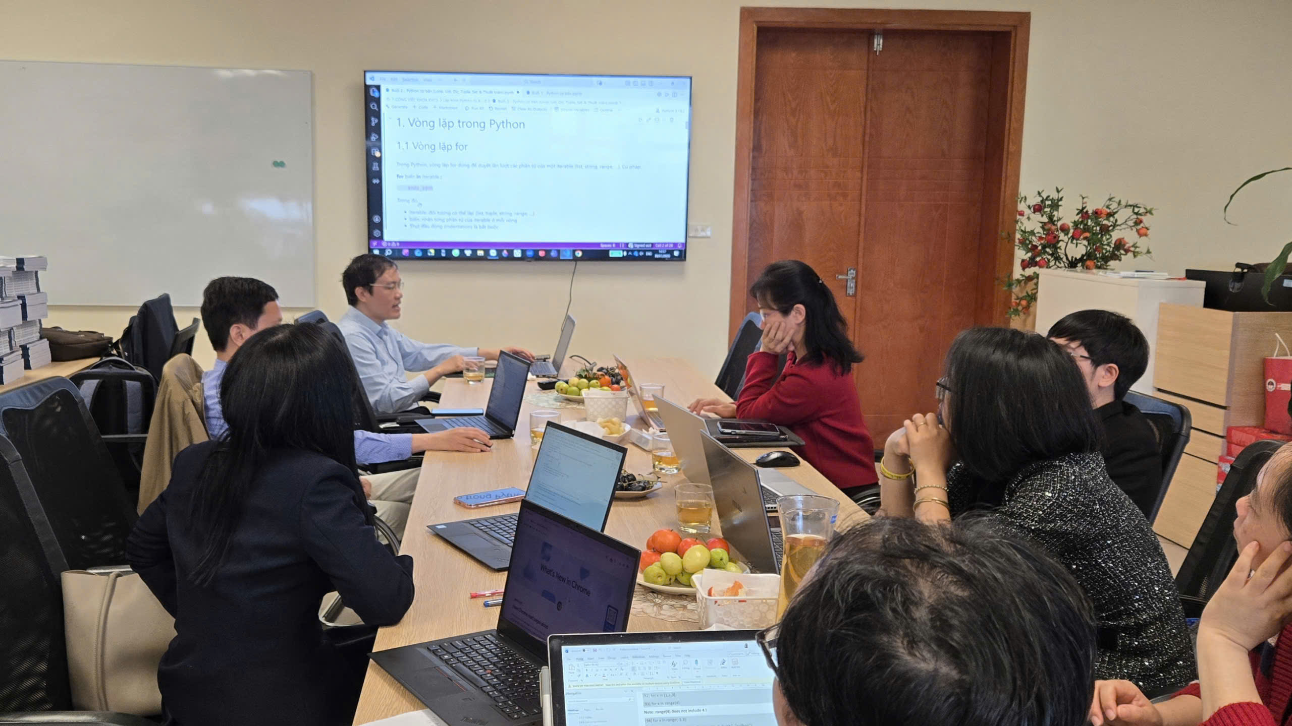 Trong buổi thảo luận, giảng viên trao đổi kinh nghiệm khai thác Python để minh họa và trực quan hóa các khái niệm toán học. Buổi sinh hoạt chuyên môn số 2 tiếp tục khẳng định vai trò của lập trình Python như một công cụ hỗ trợ giảng dạy hiện đại, đồng thời tạo nền tảng cho các buổi tiếp theo trong chuỗi, nơi các ứng dụng nâng cao hơn như tối ưu hóa, mô phỏng ngẫu nhiên và trực quan hóa đa chiều sẽ được triển khai.