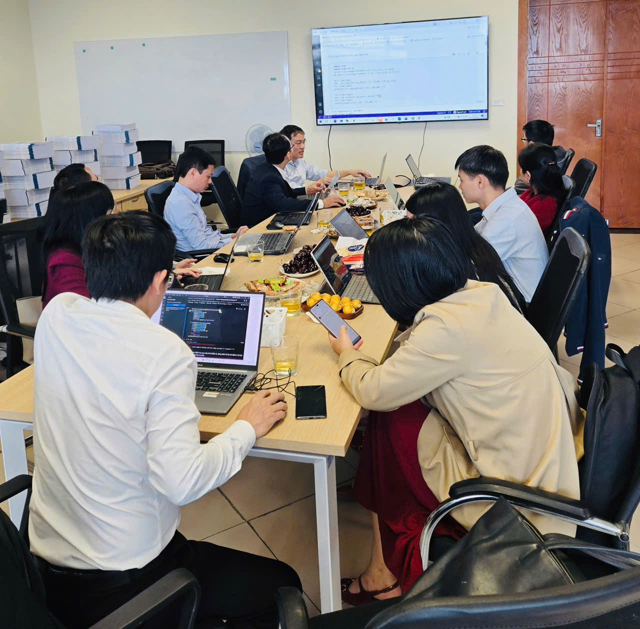 Thông qua phần trình bày và thảo luận, các giảng viên đã cùng nhau thực hành các ví dụ cụ thể, từ việc tạo các vector và ma trận cho đến giải các bài toán toán học bằng mã Python ngắn gọn và hiệu quả. Việc sử dụng NumPy không chỉ giúp tăng tốc độ tính toán mà còn hỗ trợ xây dựng các minh họa trực quan, giúp sinh viên dễ dàng tiếp cận các khái niệm trừu tượng trong Toán học.