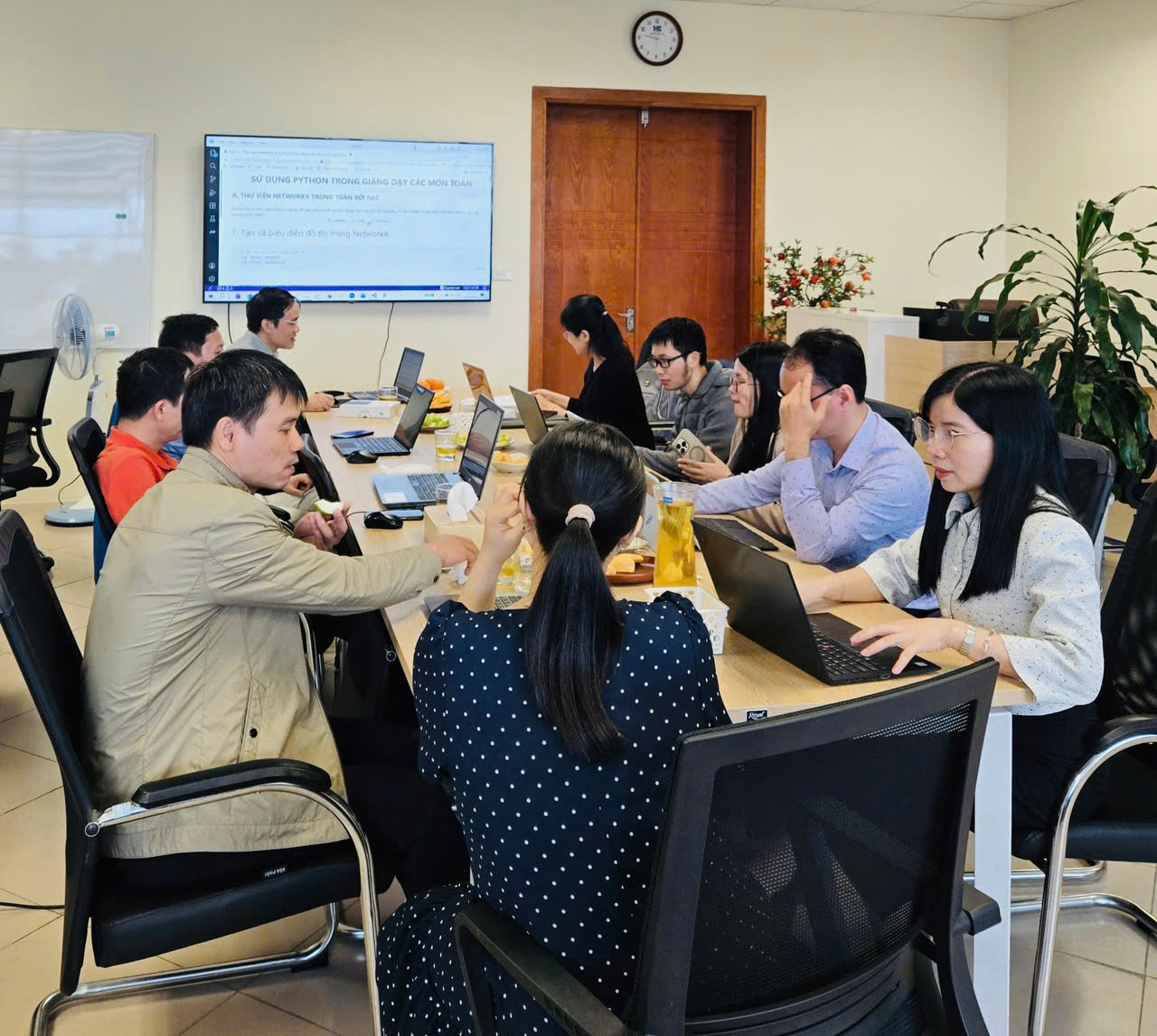 Điểm nổi bật của buổi sinh hoạt là sự kết hợp giữa Toán rời rạc, Đại số và Giải tích, thể hiện qua việc sử dụng hai thư viện với hai hướng tiếp cận khác nhau: một bên là mô hình hóa và trực quan hóa cấu trúc, một bên là xử lý chính xác các biểu thức ký hiệu. Các giảng viên đã cùng nhau thực hành xây dựng mô hình đồ thị đơn giản, đồng thời sử dụng SymPy để giải các bài toán quen thuộc trong chương trình giảng dạy.